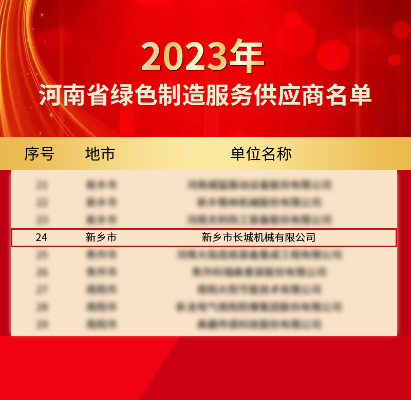 近期,河南省第一批綠色制造服務(wù)供應(yīng)商評審結(jié)果進(jìn)行公示,新鄉(xiāng)長城成功上榜!這是新鄉(xiāng)長城在綠色低碳發(fā)展領(lǐng)域獲得的又一殊榮。